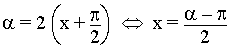 alpha[F3] = 2x + pi/2[F3][shift + 3 left arrow][alt + ( ] equi[F3] x = alpha[F3] -[F3] pi[F3]/2[shift + 6 left arrow][alt + F]